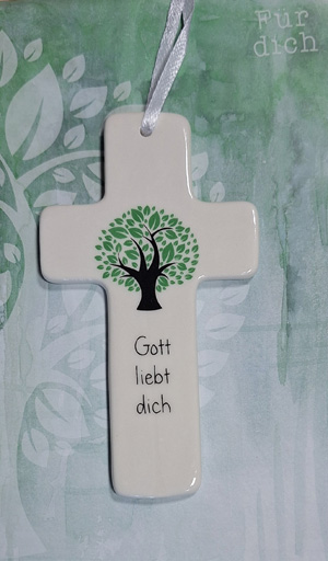 Das Kreuz vermittelt Schutz und Segen, Eingebundsein in Gottes Schöpfung. Sie schenken damit dem Kind Zuwendung und Unterstützung auf seinem Lebensweg.
